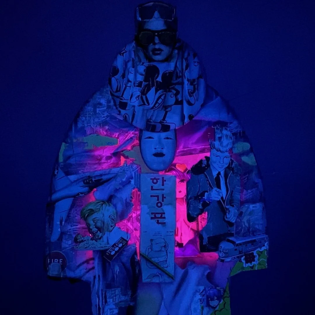 These unique mixed media collage limited to editions, are handmade by KASSEUS. These pieces can feature mixed media collage, acrylic paint, spray paint, fabric, or gold leaf accents, offering a one-of-a-kind unique experience.